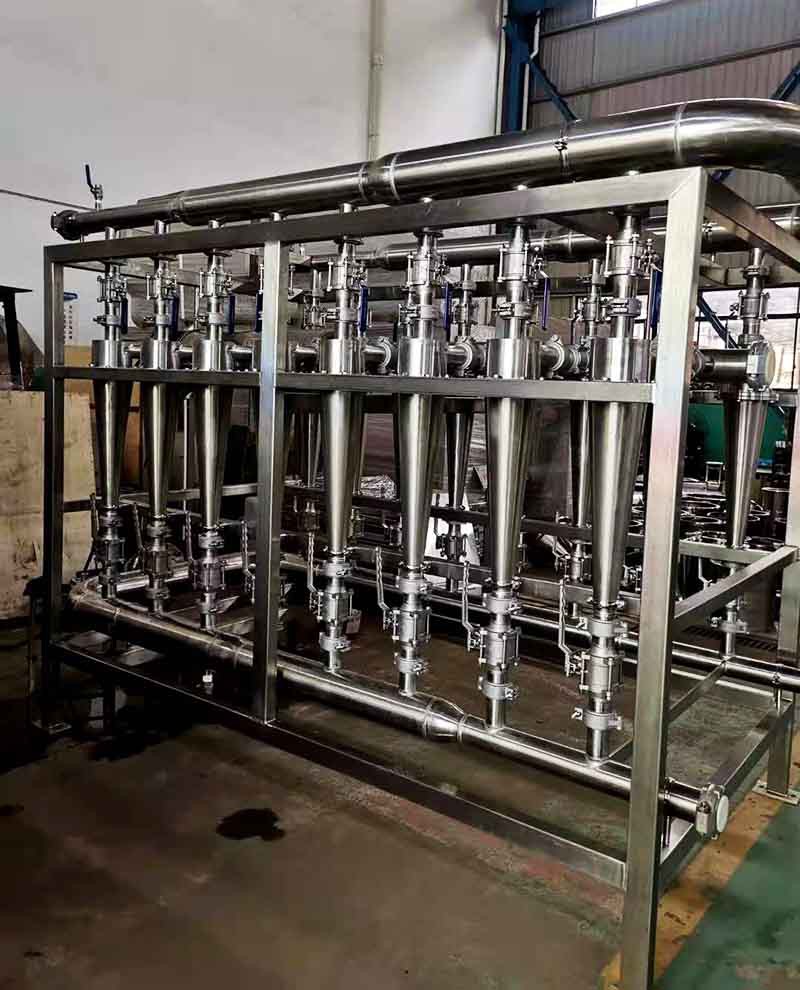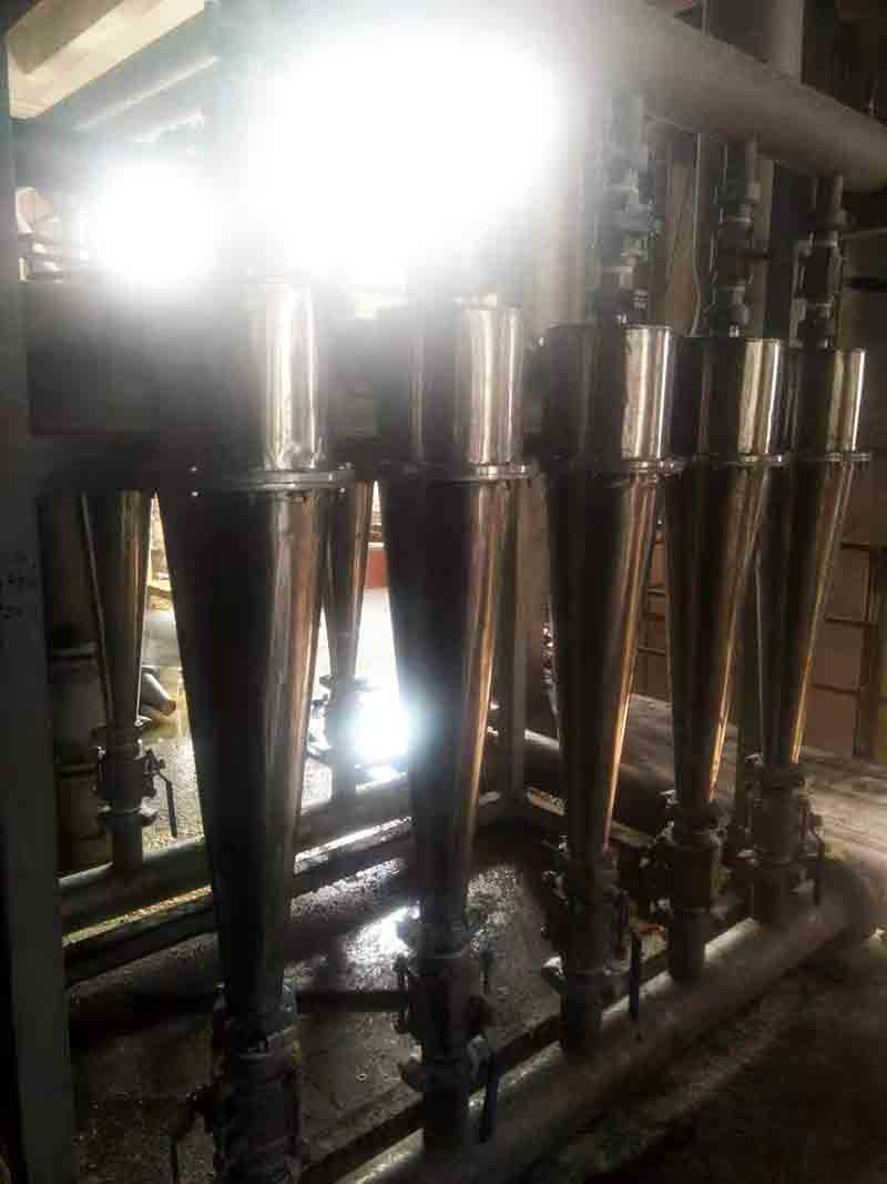作为离心力与重力复合力场的典型设备,因其结构简单、占地面积小、安装操作方便、运行成本低等优点而被广泛地用于诸多领域。旋流器的基本原理是将具有一定密度差的液-液、液-固、液-气等两相或多相混合物在离心力的作用下进行分离。将混合液以一定的压力切向进入旋流器,在圆柱腔内产生高速旋转流场。混合物中密度大的组分在旋流场的作用下同时沿轴向向下运动,沿径向向外运动,在到达锥体段沿器壁向下运动,并由底流口排出,这样就形成了外旋涡流场;密度小的组分向轴线方向运动,并在轴线形成一向上运动的内涡旋,然后由溢流口排出,这样就达到了两相分离的目的。